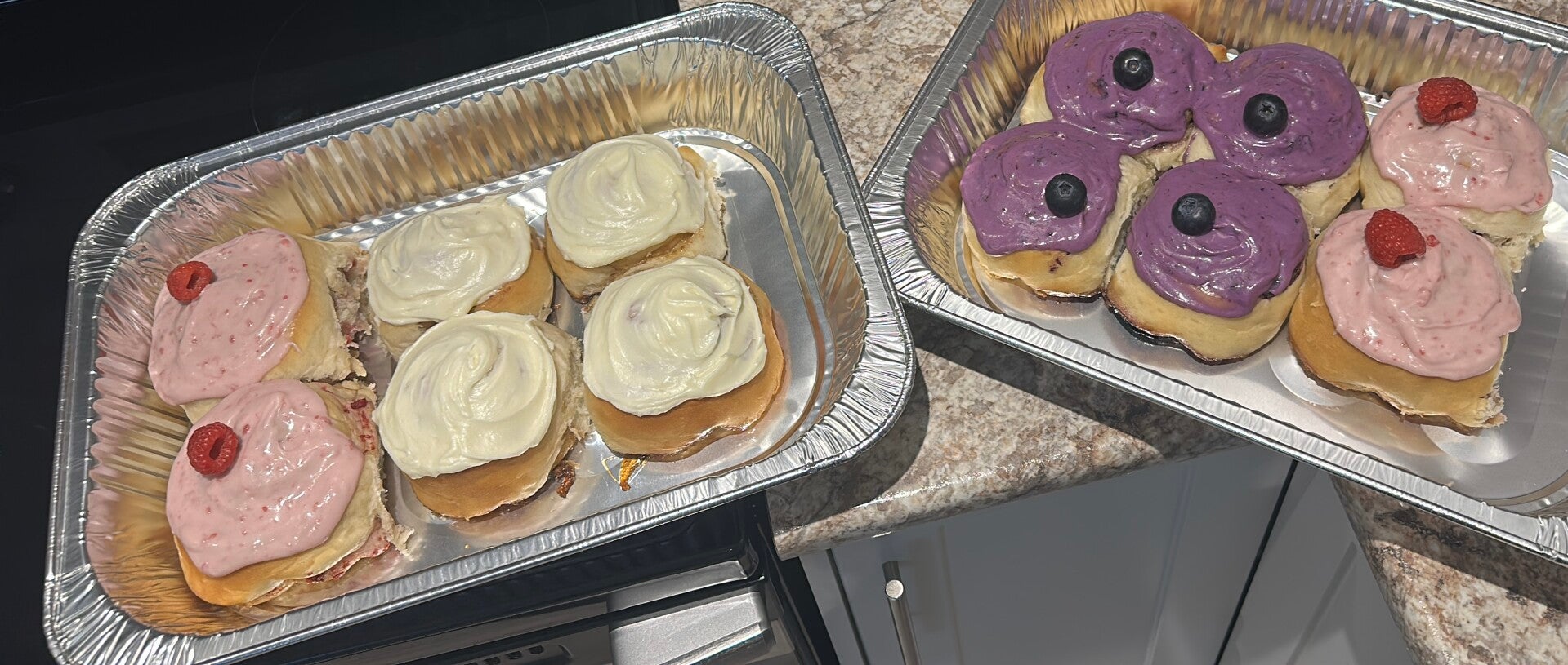 Warm, gooey cinnamon buns, fresh from the oven! 🥐✨ Soft, fluffy dough swirled with sweet cinnamon sugar and topped with a rich cream cheese glaze. Perfect for breakfast or a snack